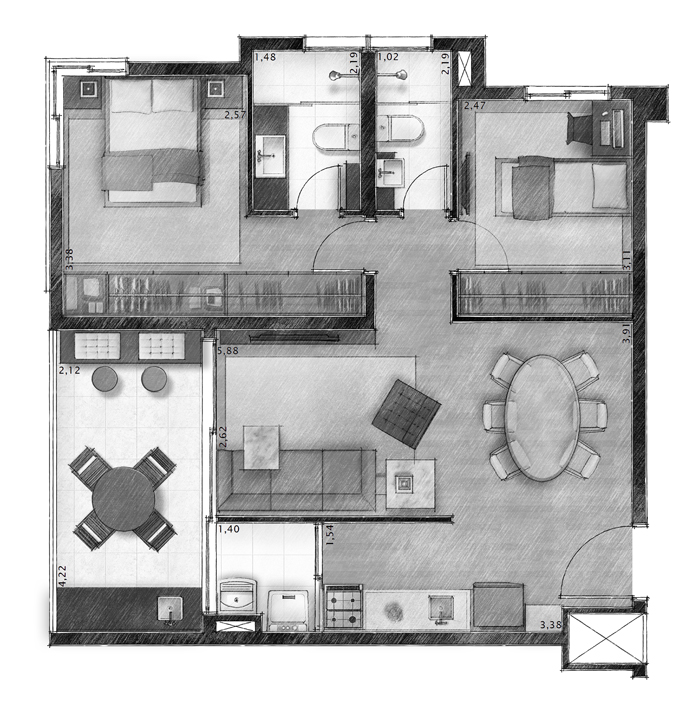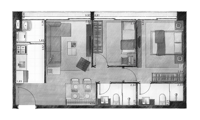 | Residencial 70,30 e 56,10 m² (2 Dorms com Suíte) - Coberturas Duplex de 264,66m² (3 Dorms com Suíte) 1 Torre 2 Vagas Terreno com 1.519 m² |